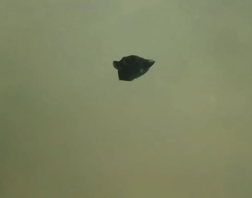 While swimming, she noticed what looked like a small brownish-green speck drifting nearby.