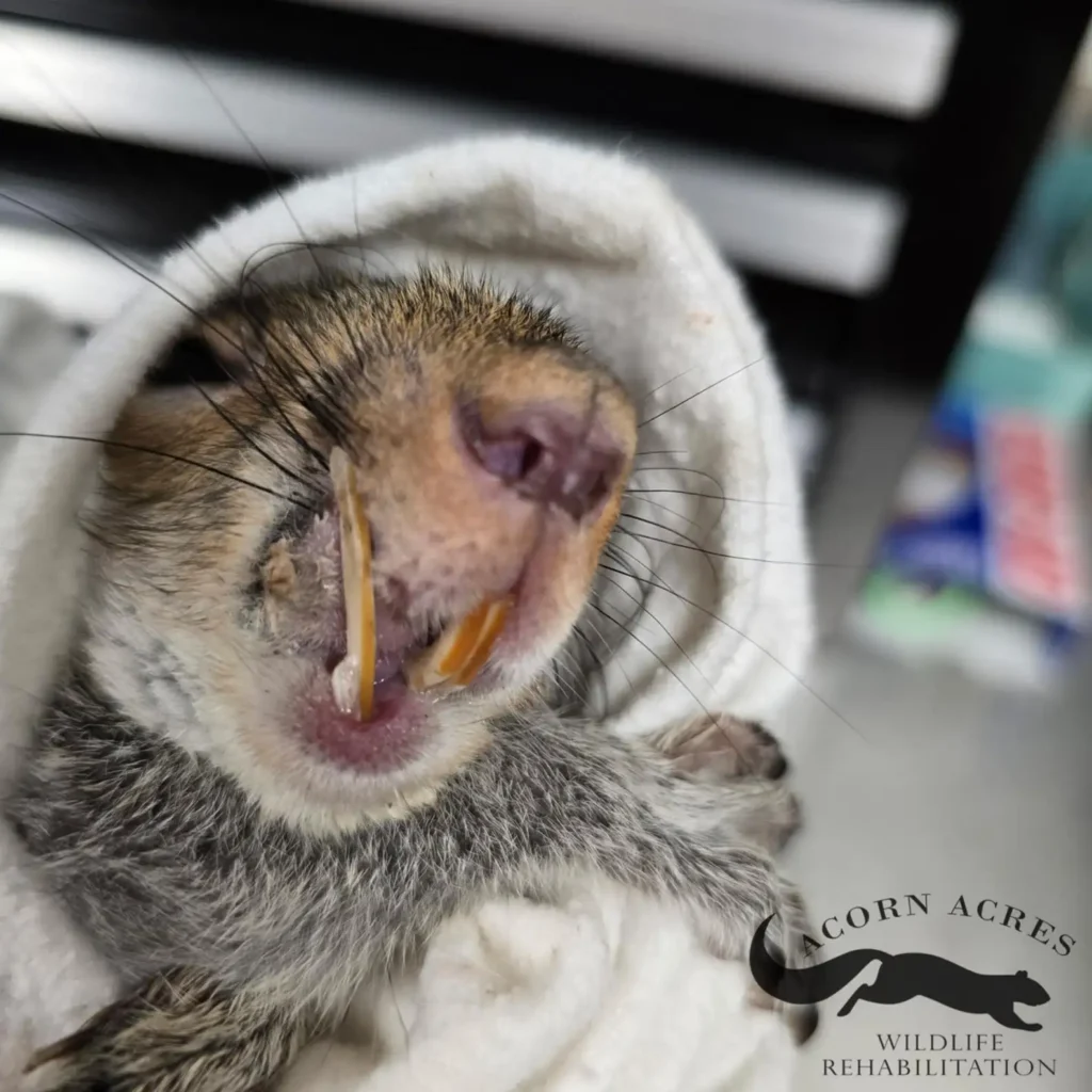 Concerned that he might eventually starve or develop an infection, Linda reached out to Acorn Acres Wildlife Rehabilitation for guidance.