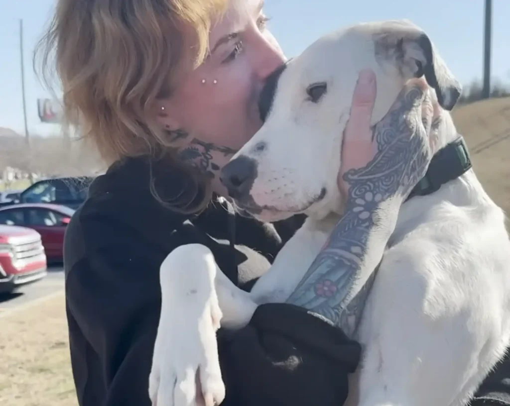 When Bailey spotted a black-and-white pittie struggling across a gas station parking lot, she knew something was very wrong.