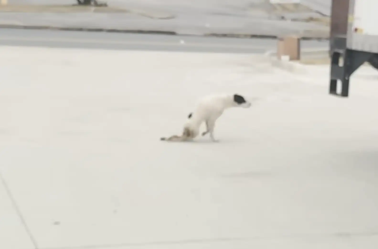 She was dragging herself across the concrete.