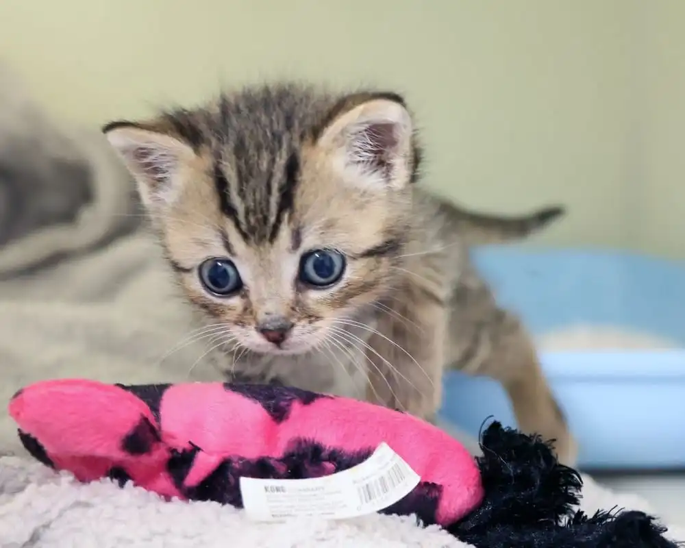 “Not everyone can care for such young kittens as Amanda did. It’s a 24/7 commitment, but she didn’t hesitate to take him home. Her compassion, dedication, and tireless care gave Merlin the lifeline he needed to survive and thrive. Thanks to Amanda, Merlin is now healthy, strong, and full of life. He’s a mighty little cat who sometimes doesn’t know his own strength! He plays with gusto, chasing toys, ambushing unsuspecting feet, and wrestling with soft blankets. He’s full of energy and personality β€” a little whirlwind of curiosity and fun.”