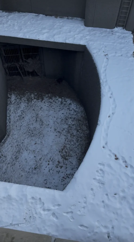 When Broz arrived on site, she immediately noticed a faint trail of paw prints etched into the snow โ the beaverโs final steps before tumbling into the pit. With the help of dedicated volunteers, Broz carefully secured the frightened animal in a carrier and coordinated a rescue to lift him safely out of the spillway.