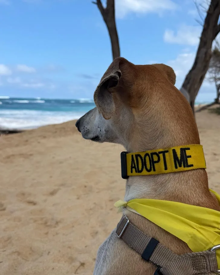 Buck also wore an βadopt meβ collar and bandana, making it easy for people they met to learn that he was looking for a home. In some cases, these temporary adventures turn into permanent matches. Shelter staff say some visitors fall so in love with the dogs they spend time with that they eventually adopt them. Maui Humane Society has even partnered with American Airlines to help transport adoptable dogs to homes in other states.