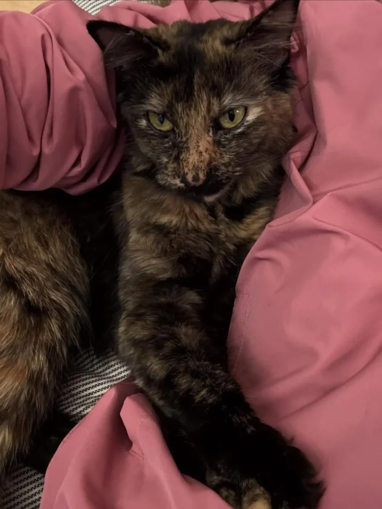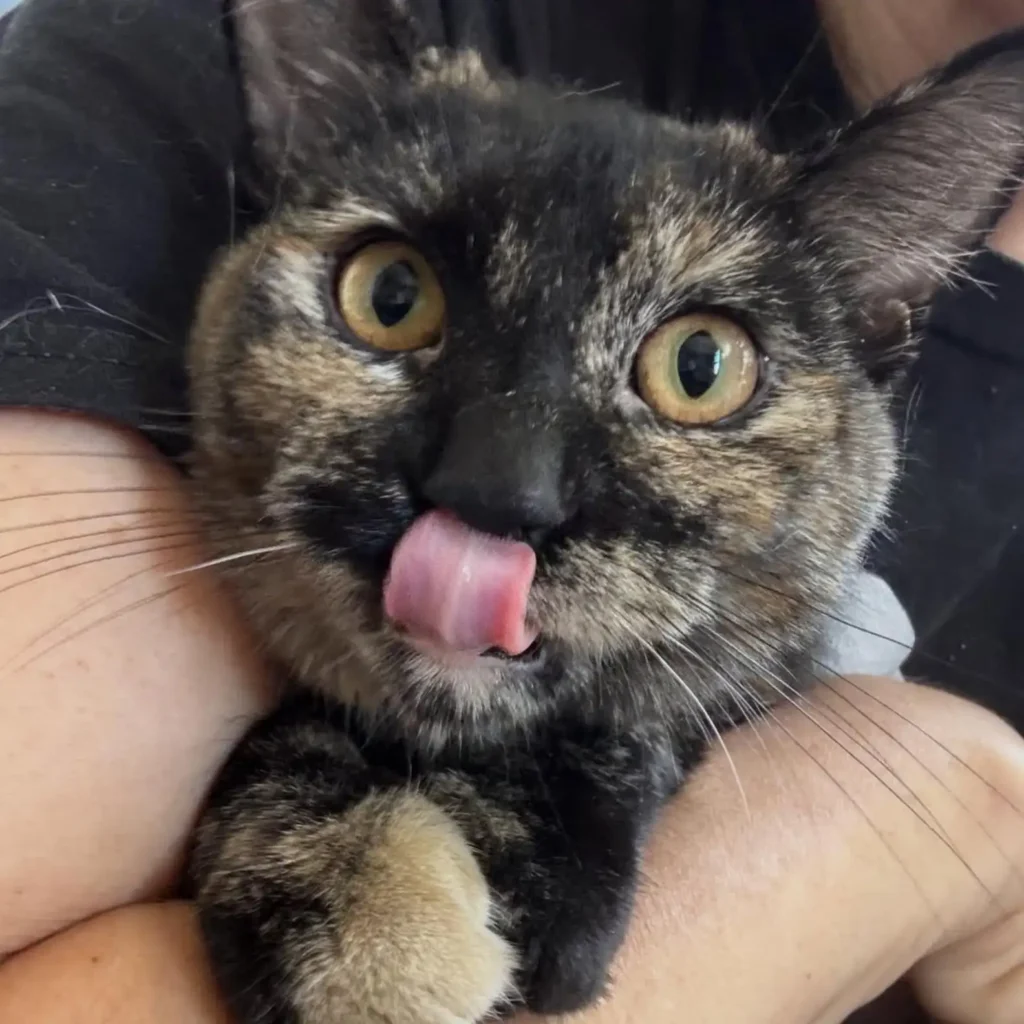 “Crepe Suzette is a one-year-old tortie love bug who prefers being the only cat,” the rescue wrote. “Her daughter, Soufflé, is equally affectionate and described by her foster as ‘more puppy than cat.’”