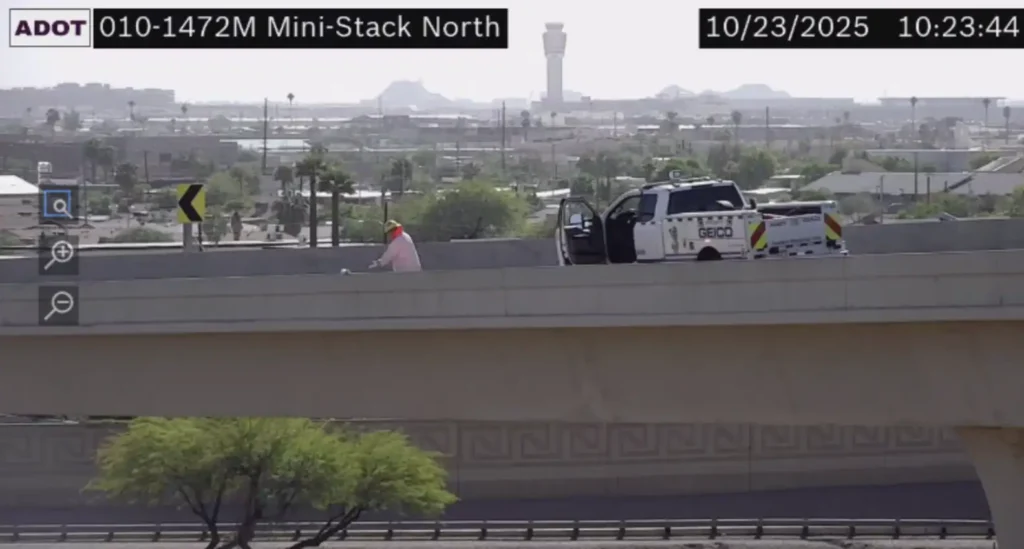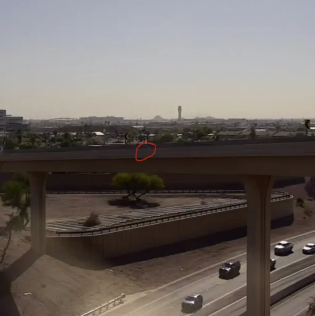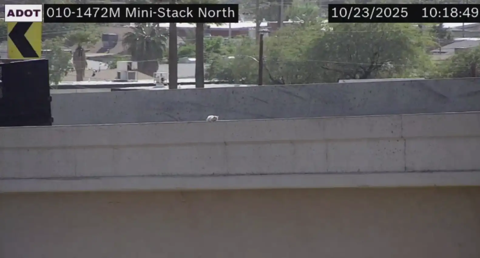 Two ADOT incident response members, Travis Benthin and Derik Woitaszewski, were sent to investigate. When they arrived, they were relieved to find the kitten alive and moving β but their relief quickly turned to worry when they saw where sheβd gone. While they were on their way, the kitten had climbed up onto the narrow ledge of the ramp β nearly 100 feet above a busy highway.