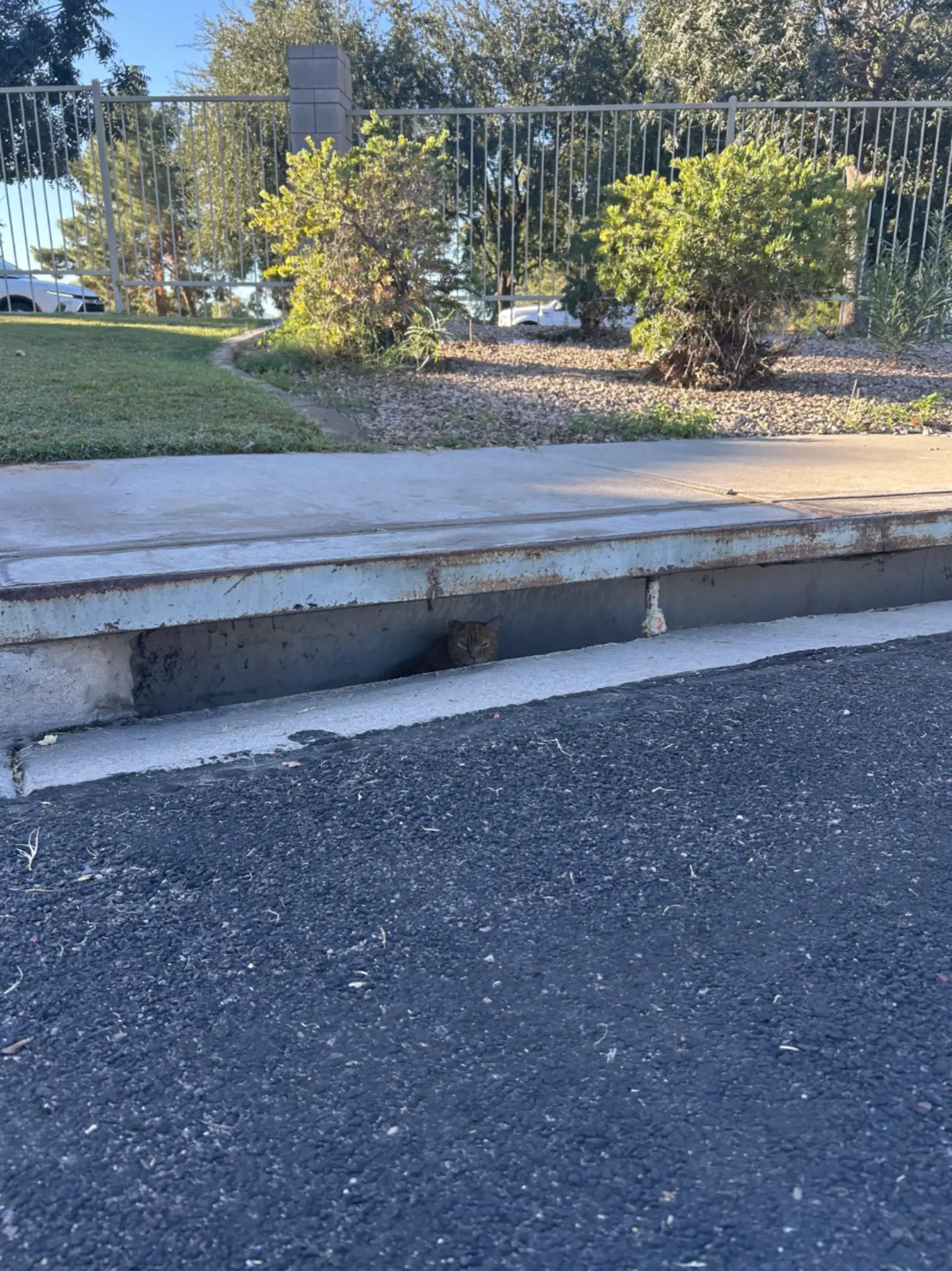 But not long after, Caitlyn and her mom heard faint meows echoing from the storm drain outside. When they went to check, they found the same cat peering up at them from inside.