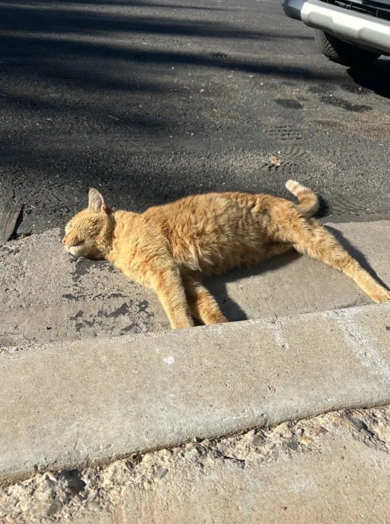 While spending time near him, Caitlyn noticed something surprising: the cat only had three legs.