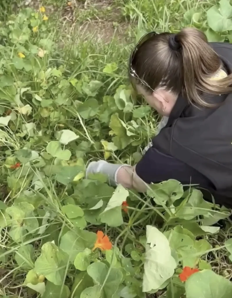 Curious and already concerned, she carefully pushed aside the bright orange blossoms and sprawling green vines. Nestled among the stems, she discovered a tiny baby bat sprawled on the ground, trembling and alone. The little girl, later named Sassy, clearly needed help.
