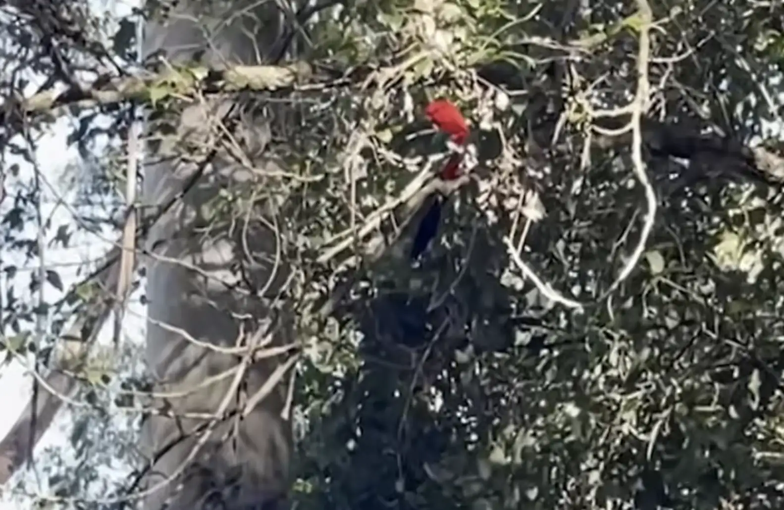 The visitor turned out to be an Australian king parrot, a striking bird known for its vivid red feathers and long tail. Estelle continued working carefully, hoping not to scare him away. Before long, another parrot appeared — then another, and another. Soon, she found herself surrounded by a small gathering of curious parrots.