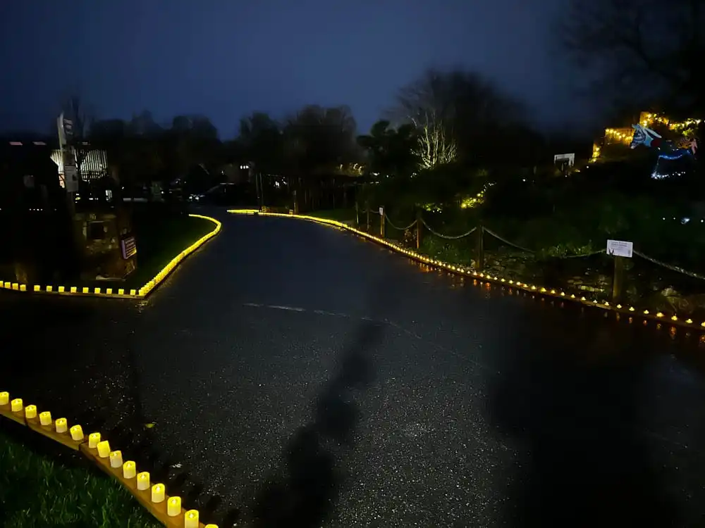 Walkways and buildings across the sanctuary were lined with battery-powered candles, creating a glowing festive pathway without the fire risk of real flames. This gave the grounds a magical sparkle while keeping visitors and animals safe.